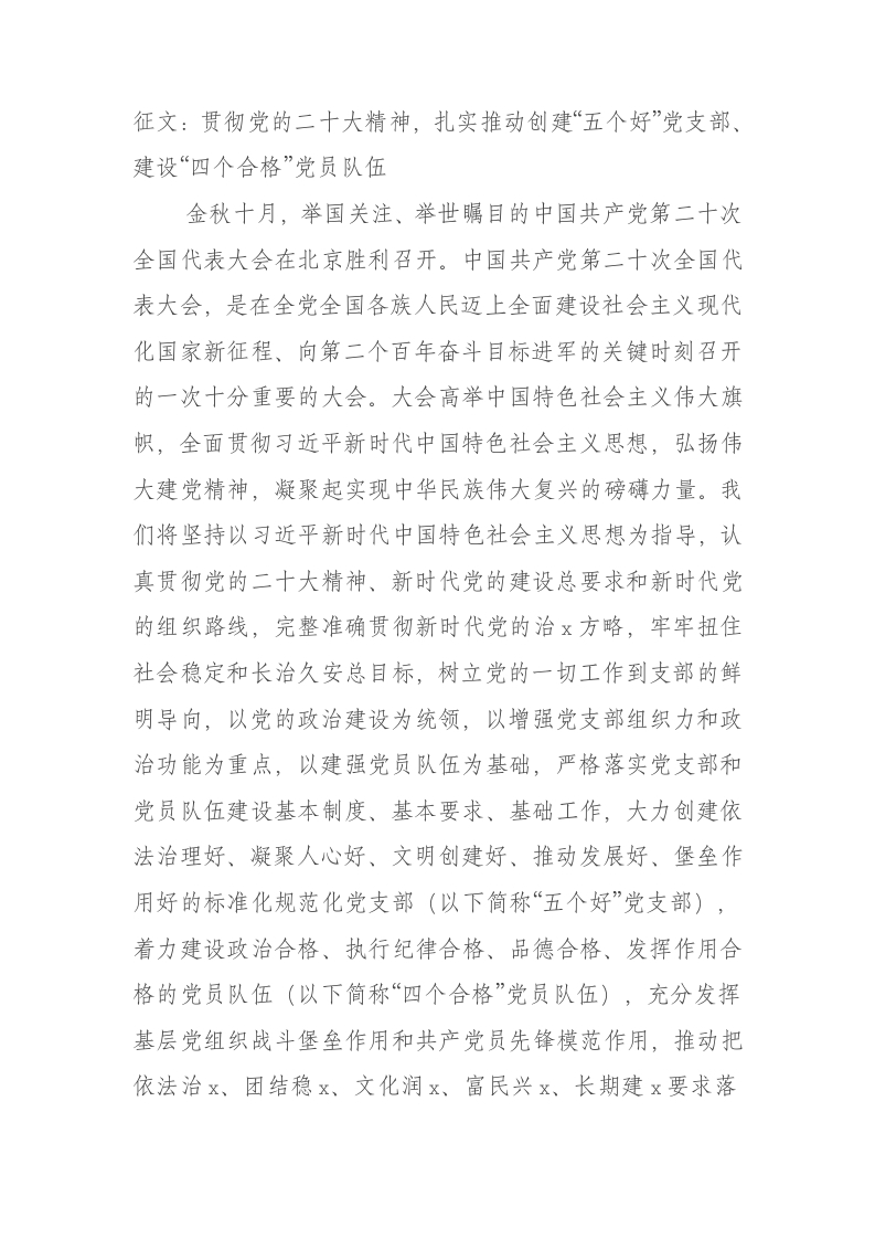 征文:贯彻党的盛会精神,扎实推动创建“五个好”党支部、建设“四个合格”党员队伍