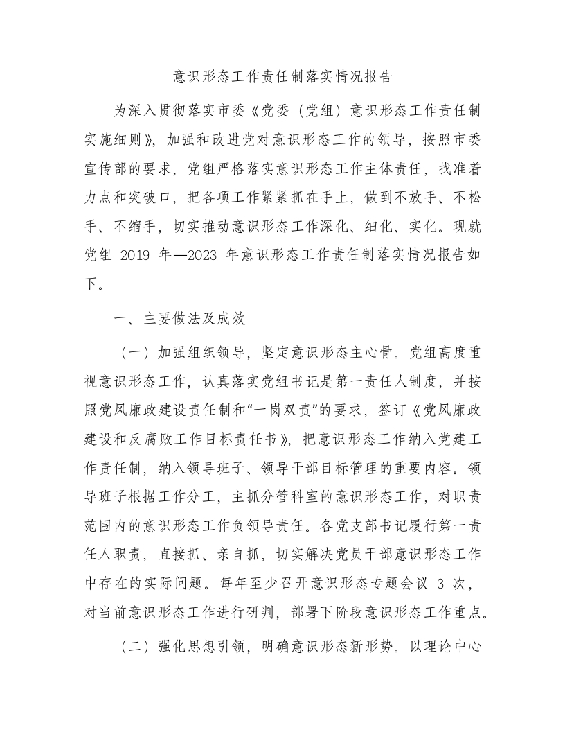 / 意识形态工作责任制落实情况报告2300字(五年总结)