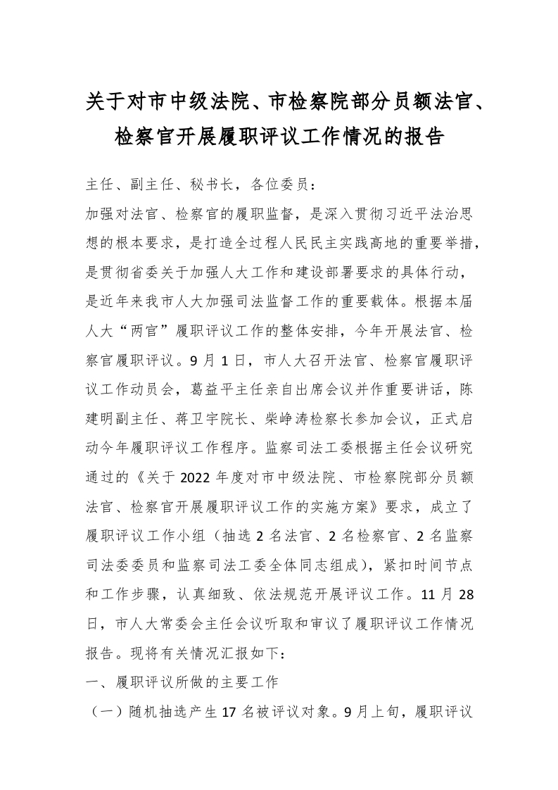 / 关于对市中级法院、市检察院部分员额法官、检察官开展履职评议工作情况的报告