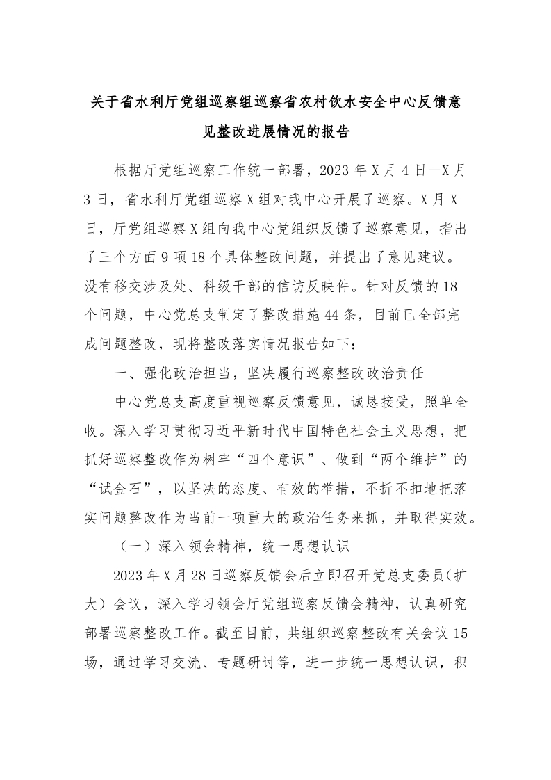 / 关于省水利厅党组巡察组巡察省农村饮水安全中心反馈意见整改进展情况的报告