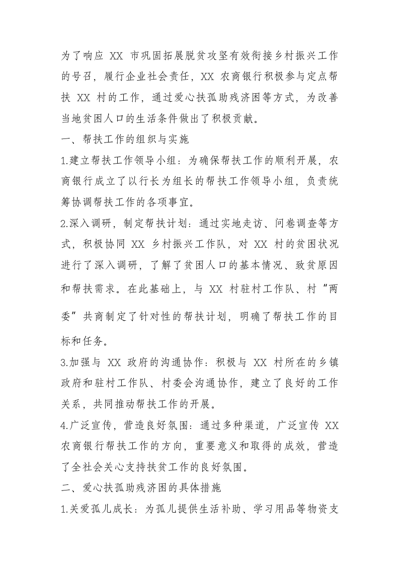 / 单位定点帮扶爱心扶孤助残济困情况报告