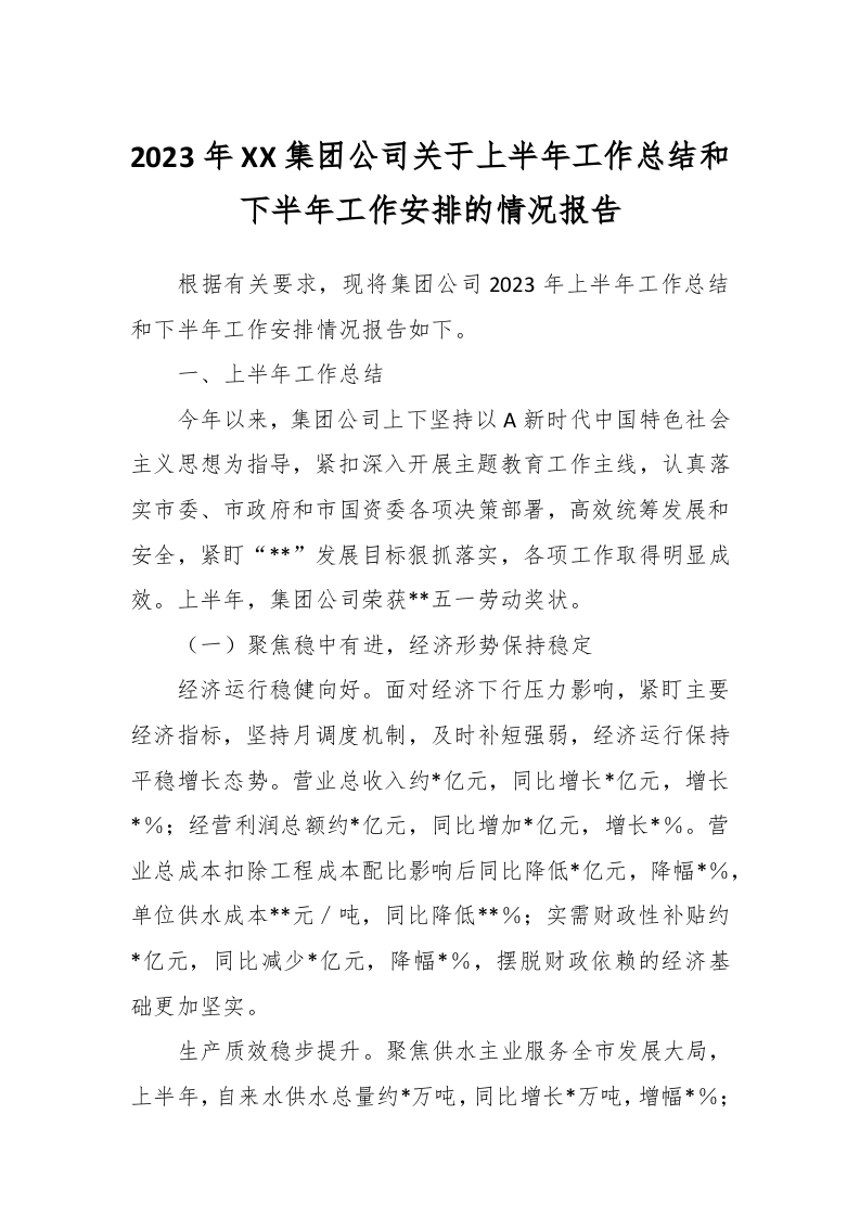 / 2023年XX集团公司关于上半年工作总结和下半年工作安排的情况报告