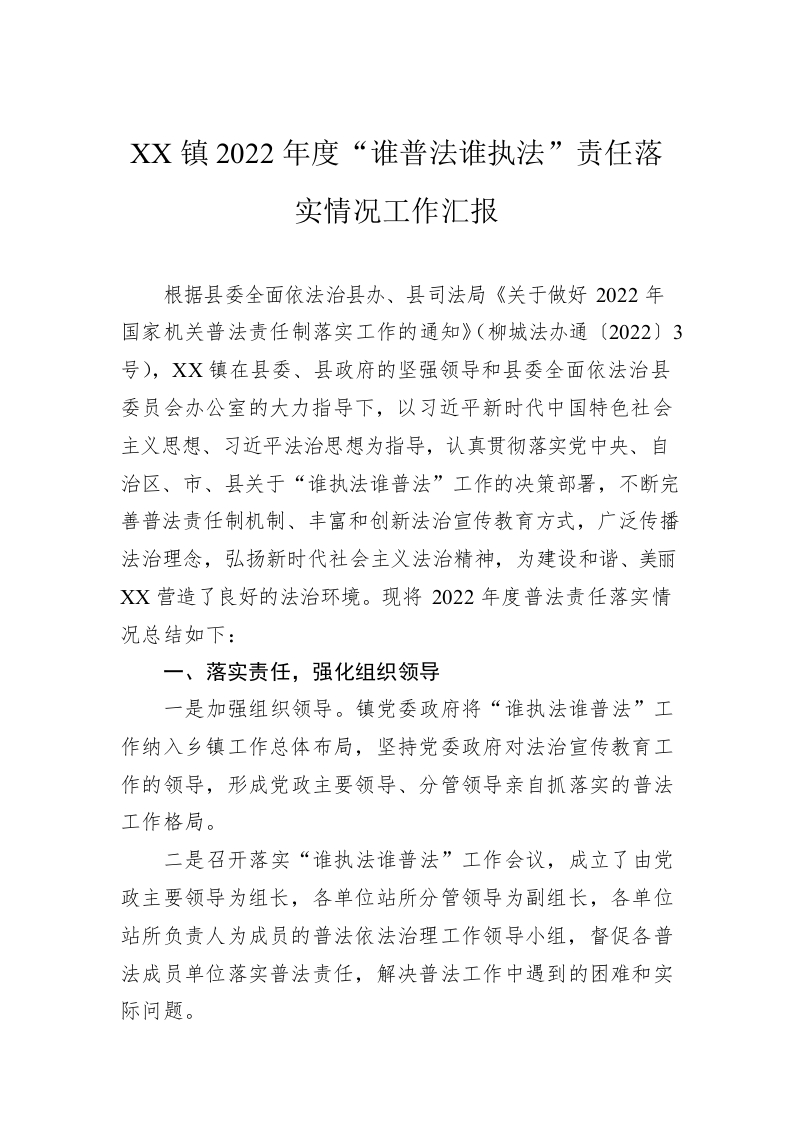 / XX镇2022年度“谁普法谁执法”责任落实情况工作汇报(20221130)