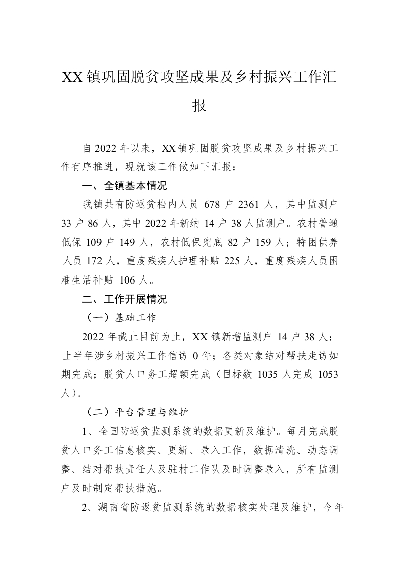 / XX镇巩固脱贫攻坚成果及乡村振兴工作汇报(20221114)