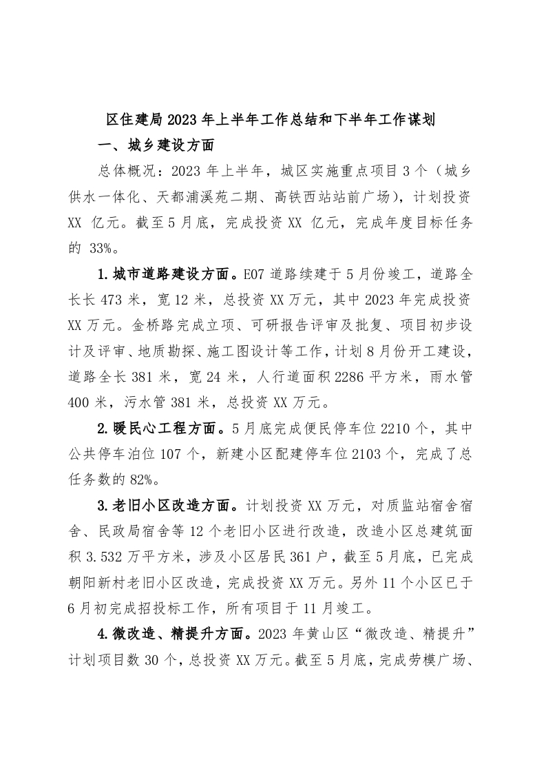 / 区住建局2023年上半年工作总结和下半年工作谋划