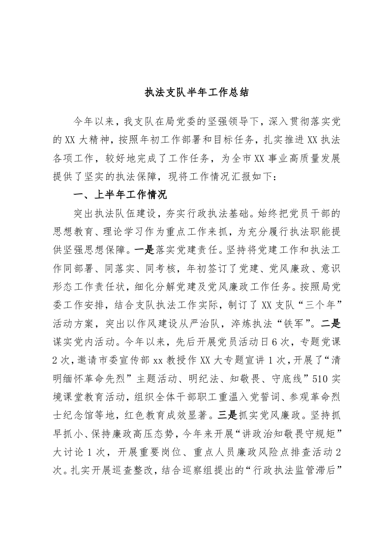 / 执法支队半年工作总结