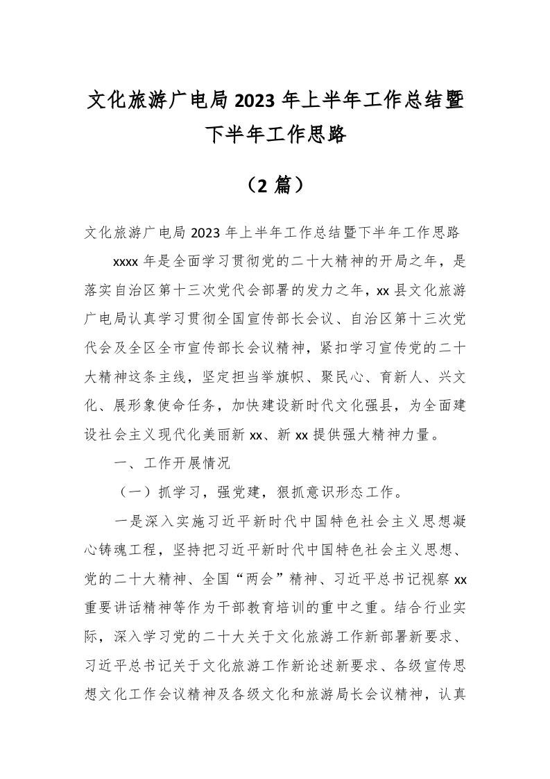 / (2篇)文化旅游广电局2023年上半年工作总结暨下半年工作思路