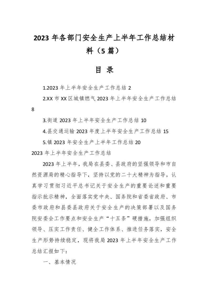 / (5篇)2023年各部门安全生产上半年工作总结材料