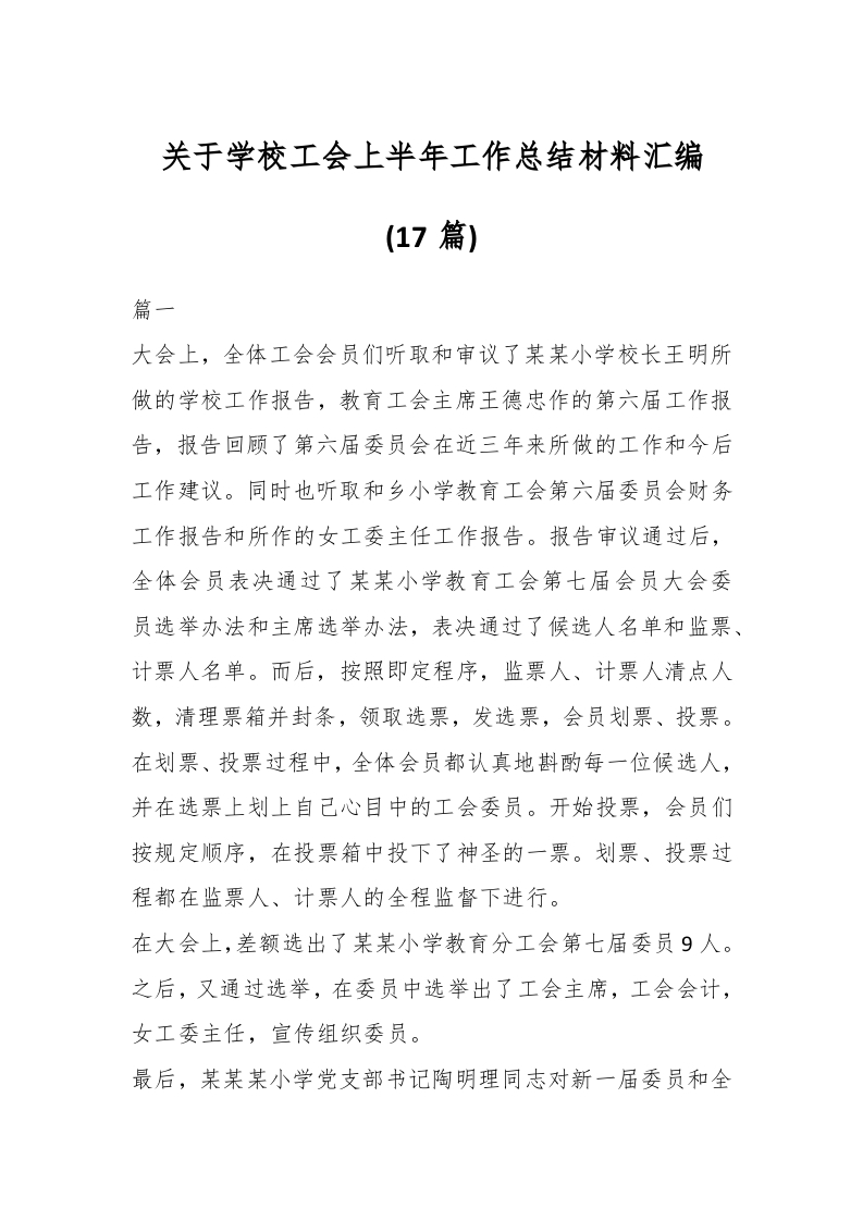 / (17篇)关于学校工会上半年工作总结材料汇编