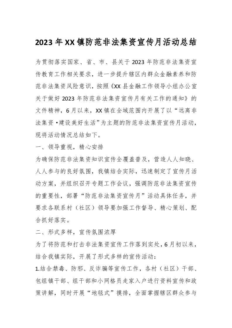/ 2023年XX镇防范非法集资宣传月活动总结