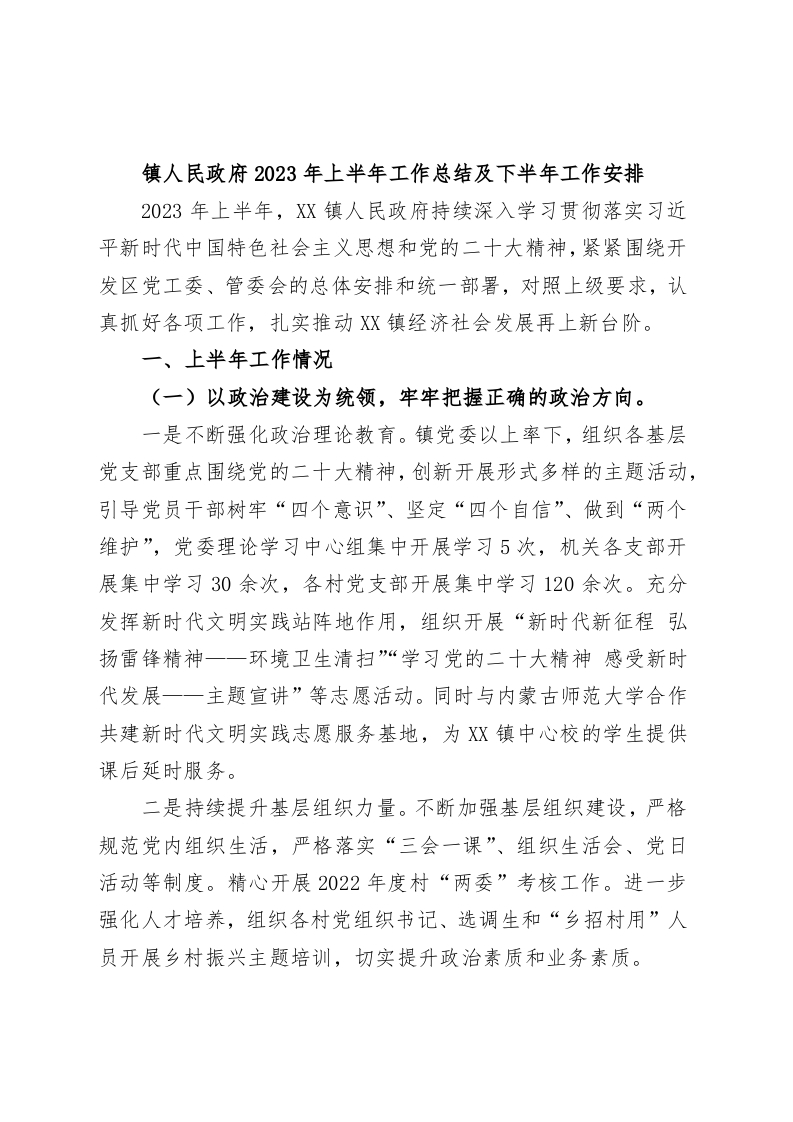 / 镇人民政府2023年上半年工作总结及下半年工作安排