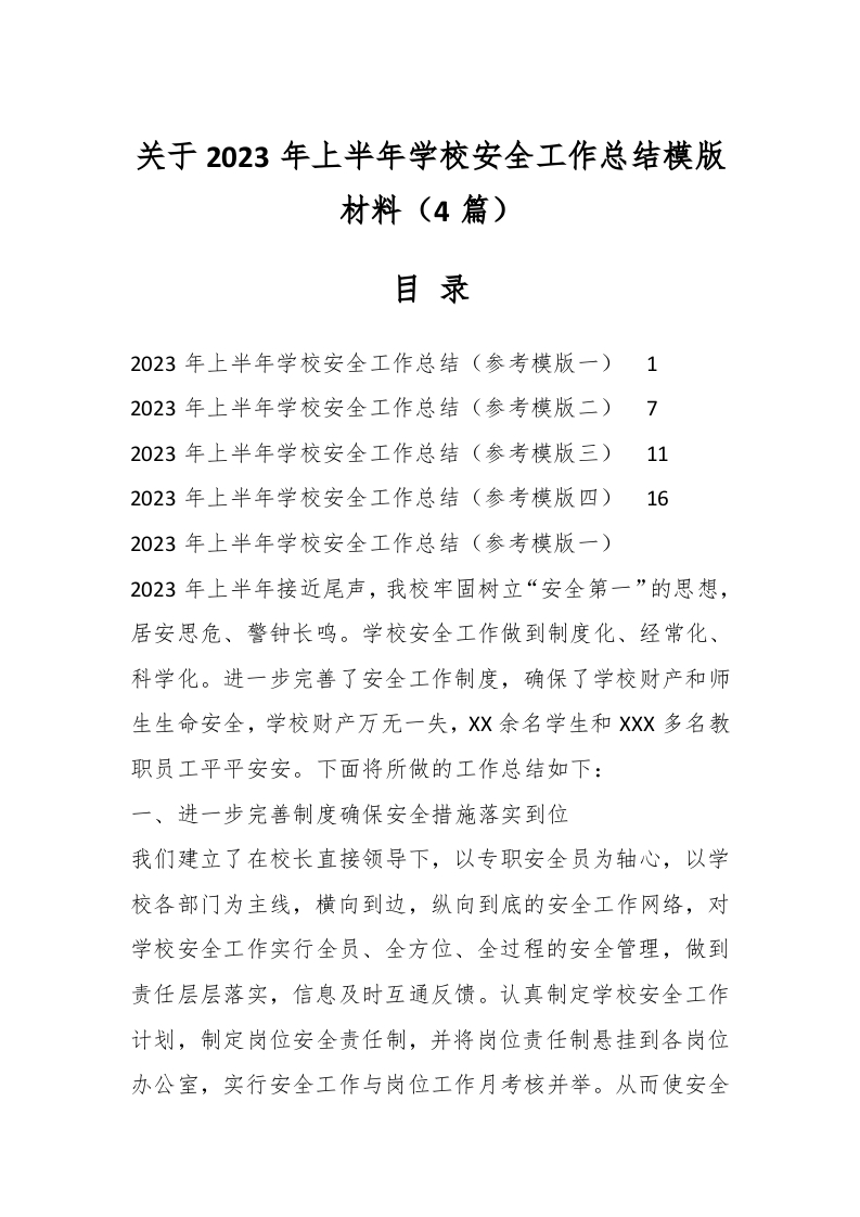 / (4篇)关于2023年上半年学校安全工作总结模版材料