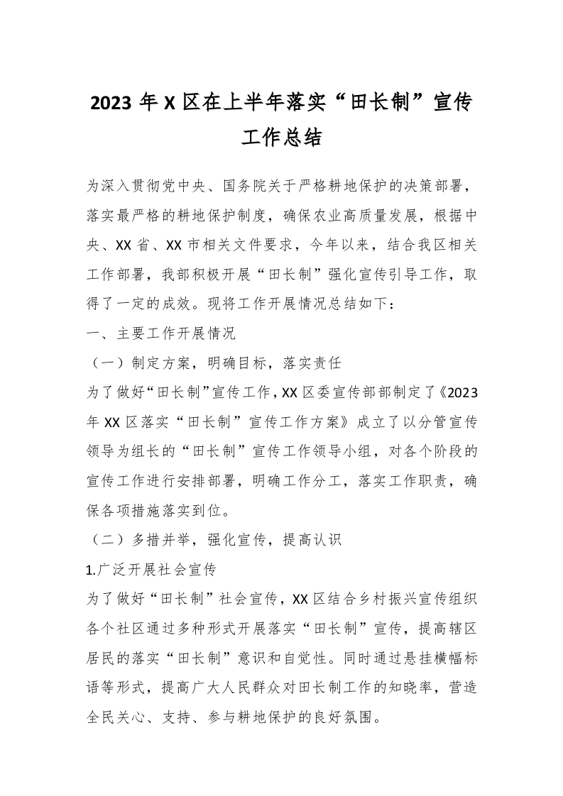 / 2023年X区在上半年落实“田长制”宣传工作总结