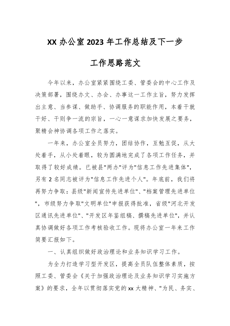 / XX办公室2023年工作总结及下一步工作思路范文