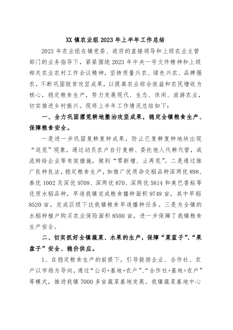 / XX镇农业组2023年上半年工作总结