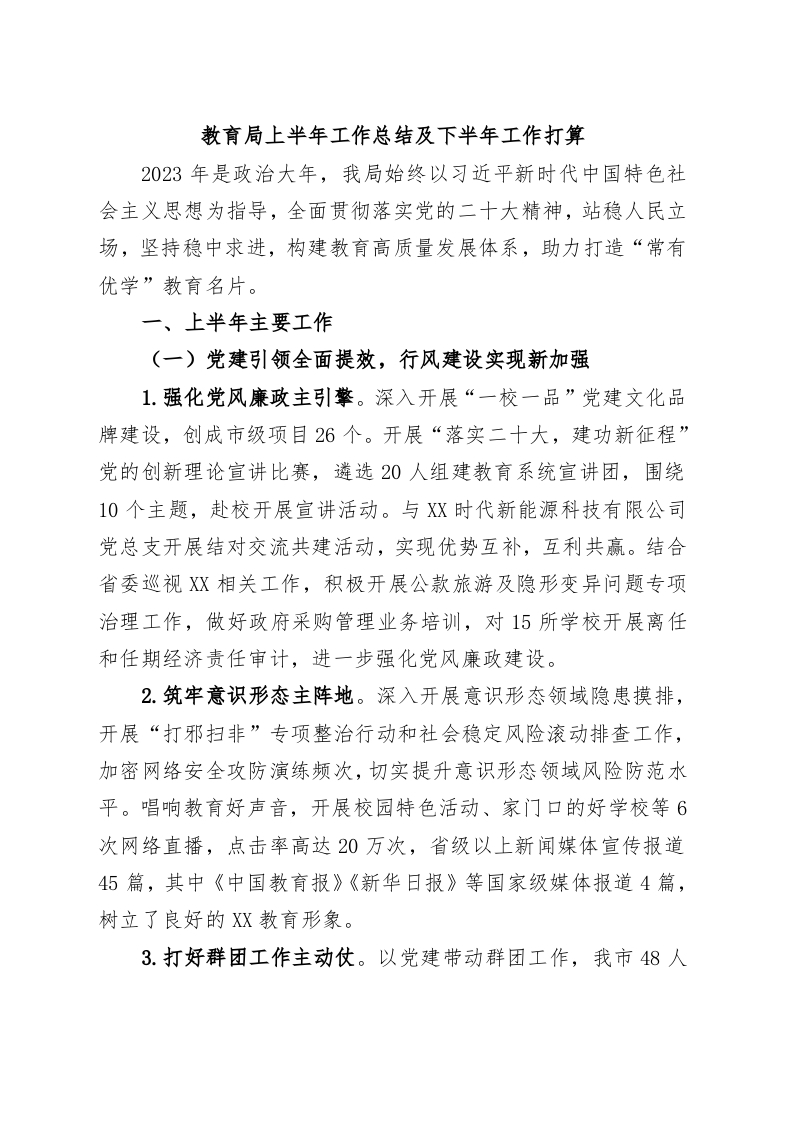 / 教育局上半年工作总结及下半年工作打算