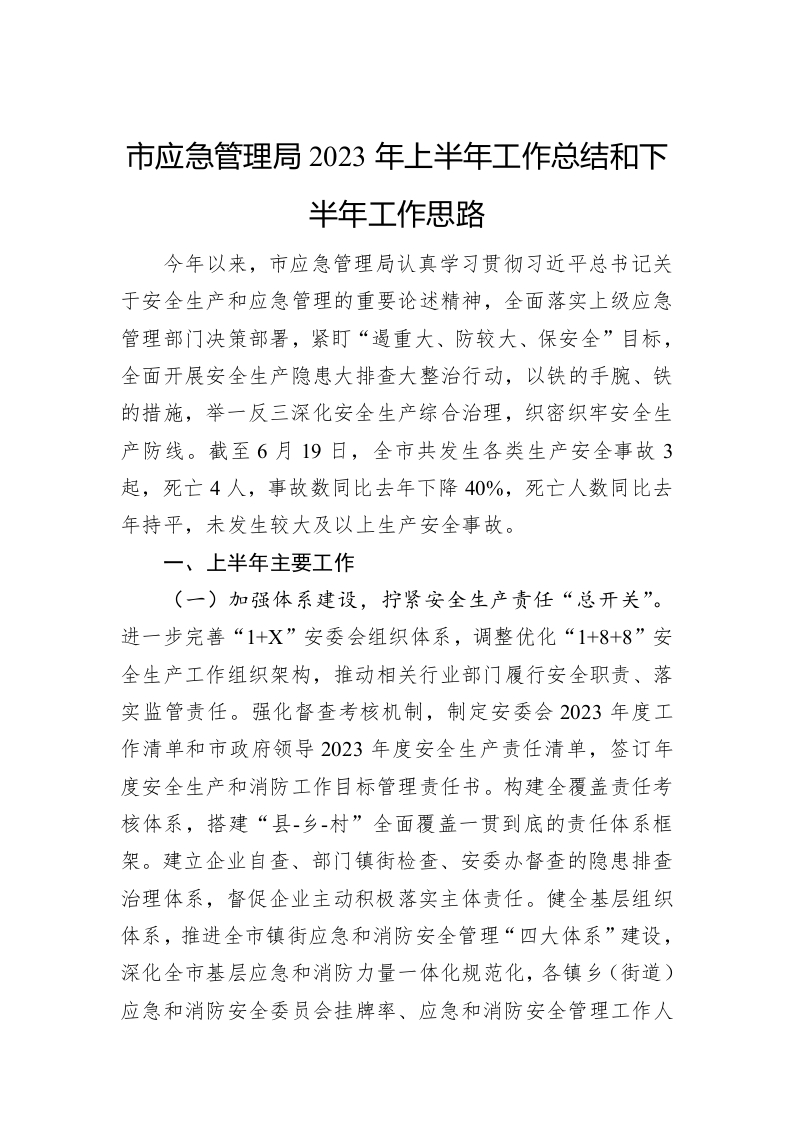 / 市应急管理局2023年上半年工作总结和下半年工作思路