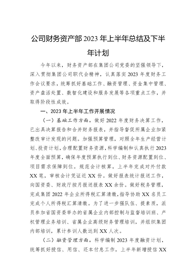 公司财务资产部2023年上半年总结及下半年计划