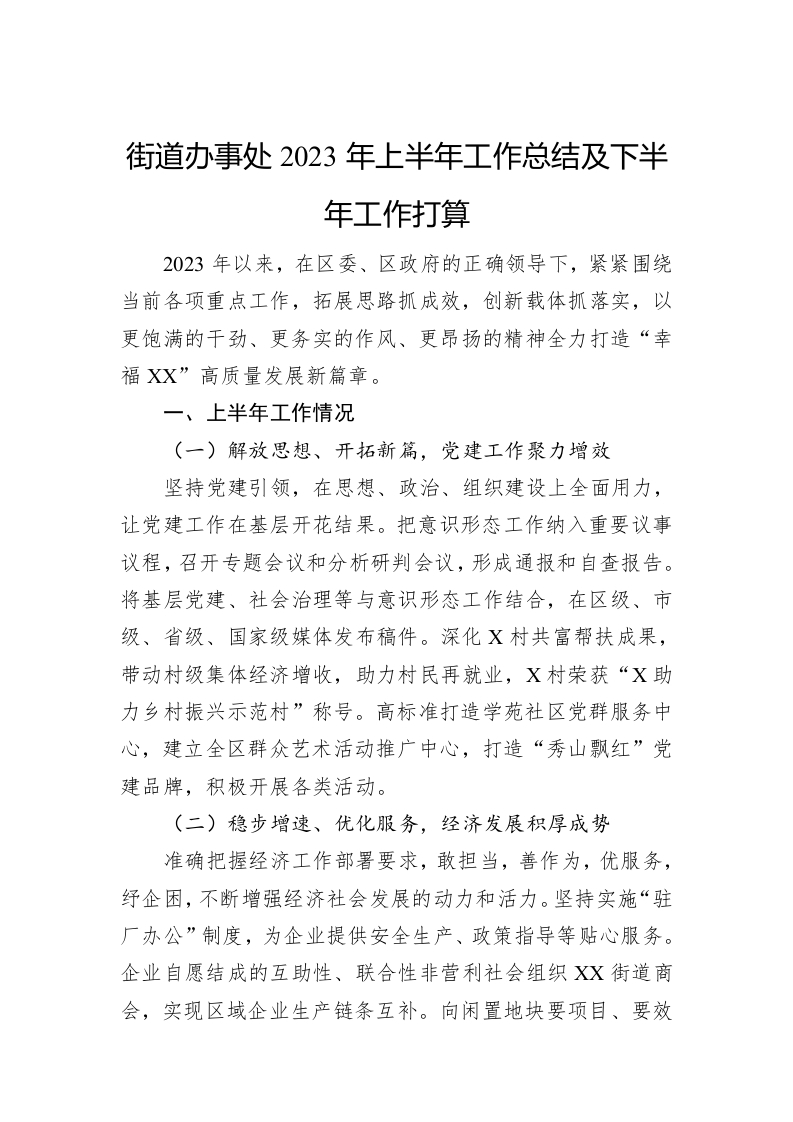 / 街道办事处2023年上半年工作总结及下半年工作打算