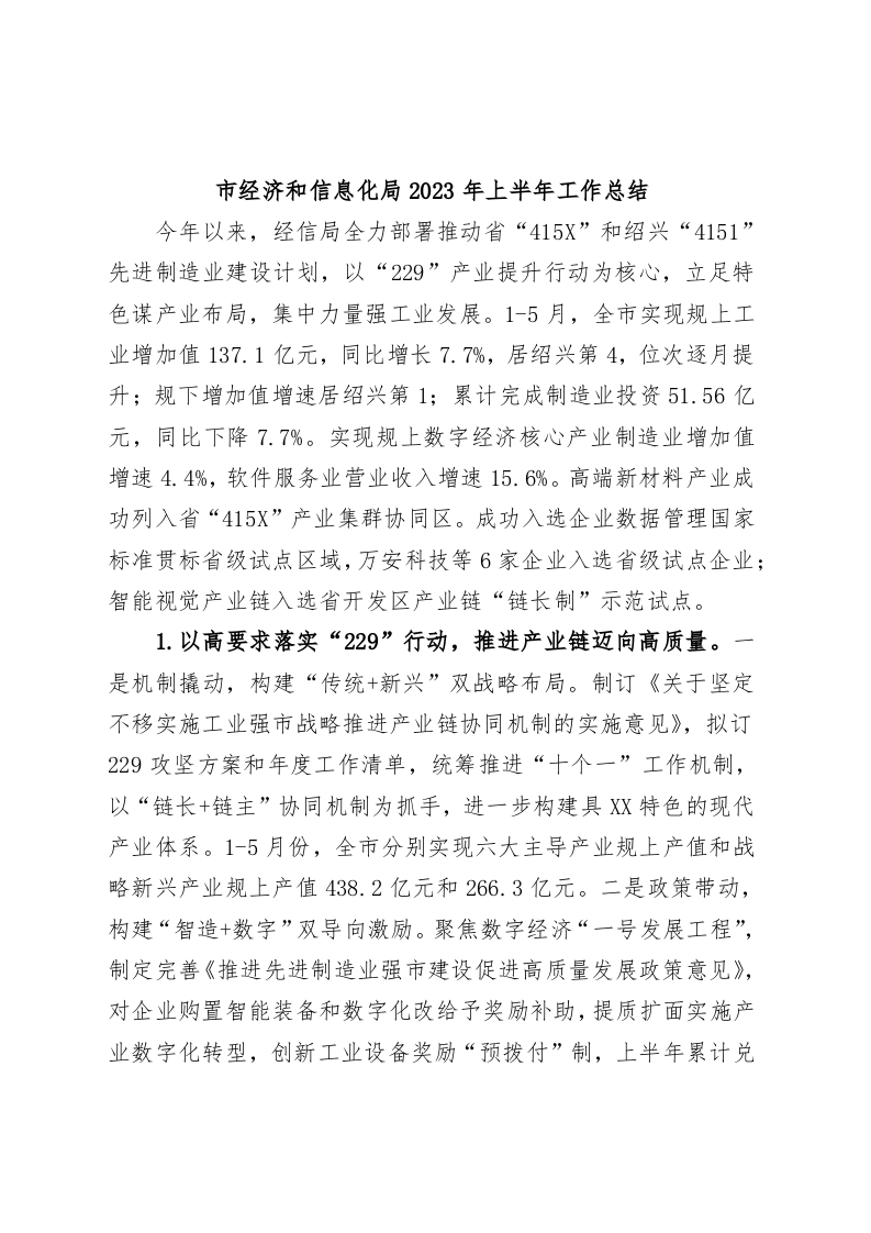 / 市经济和信息化局2023年上半年工作总结