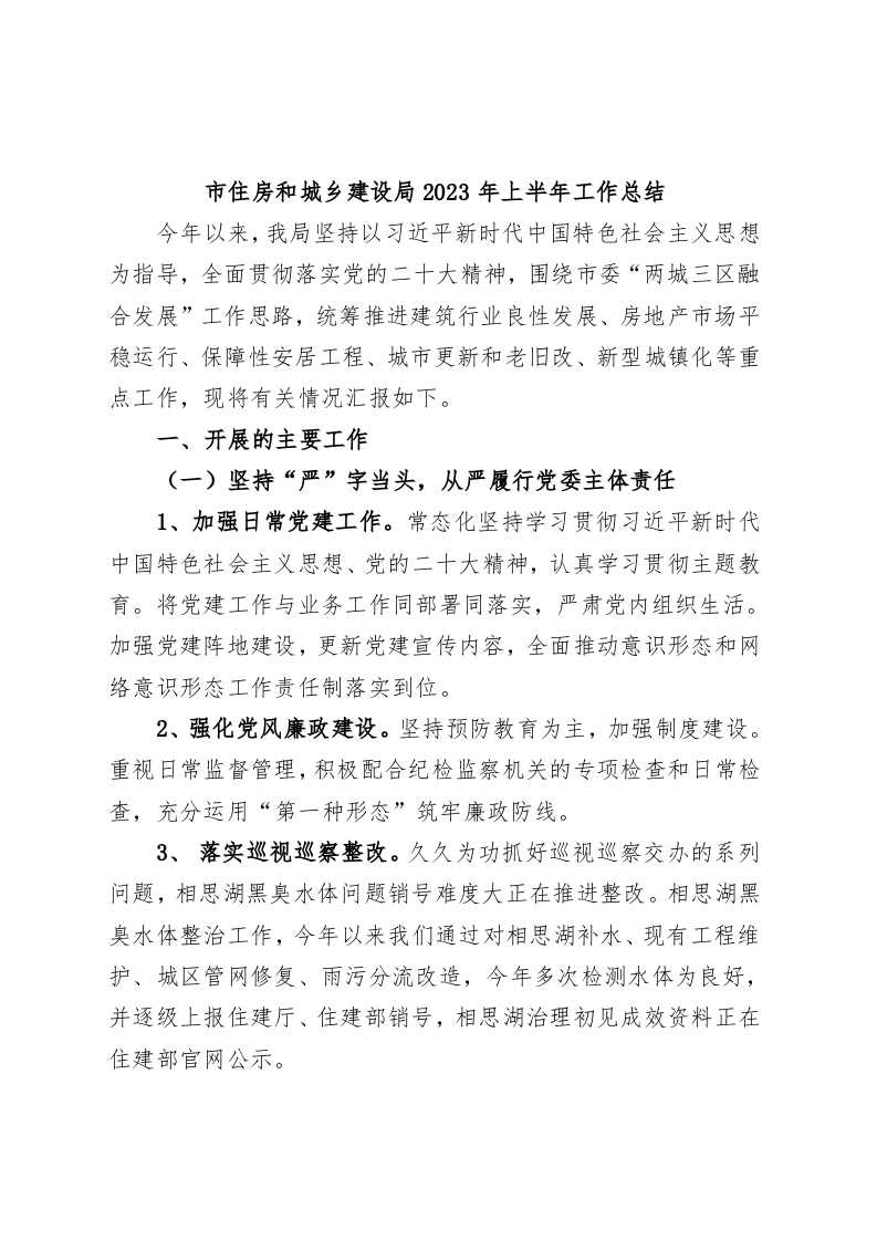 / 市住房和城乡建设局2023年上半年工作总结