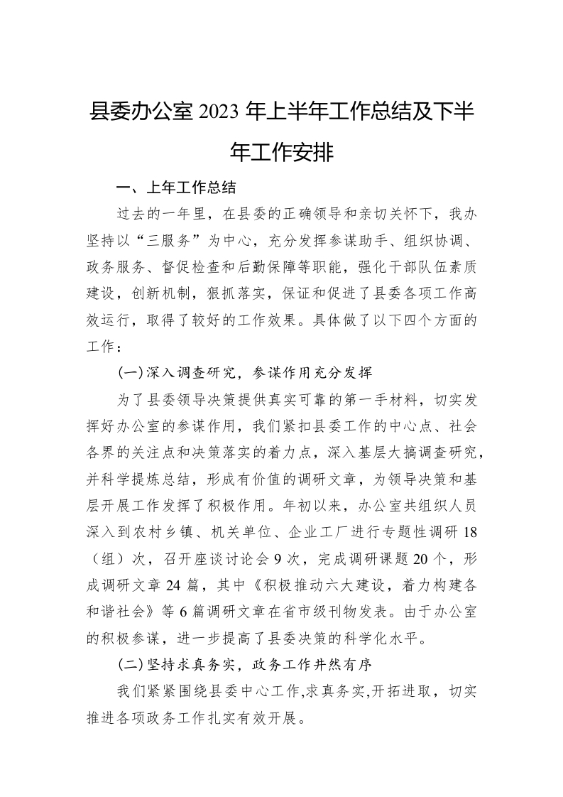 / 县委办公室2023年上半年工作总结及下半年工作安排