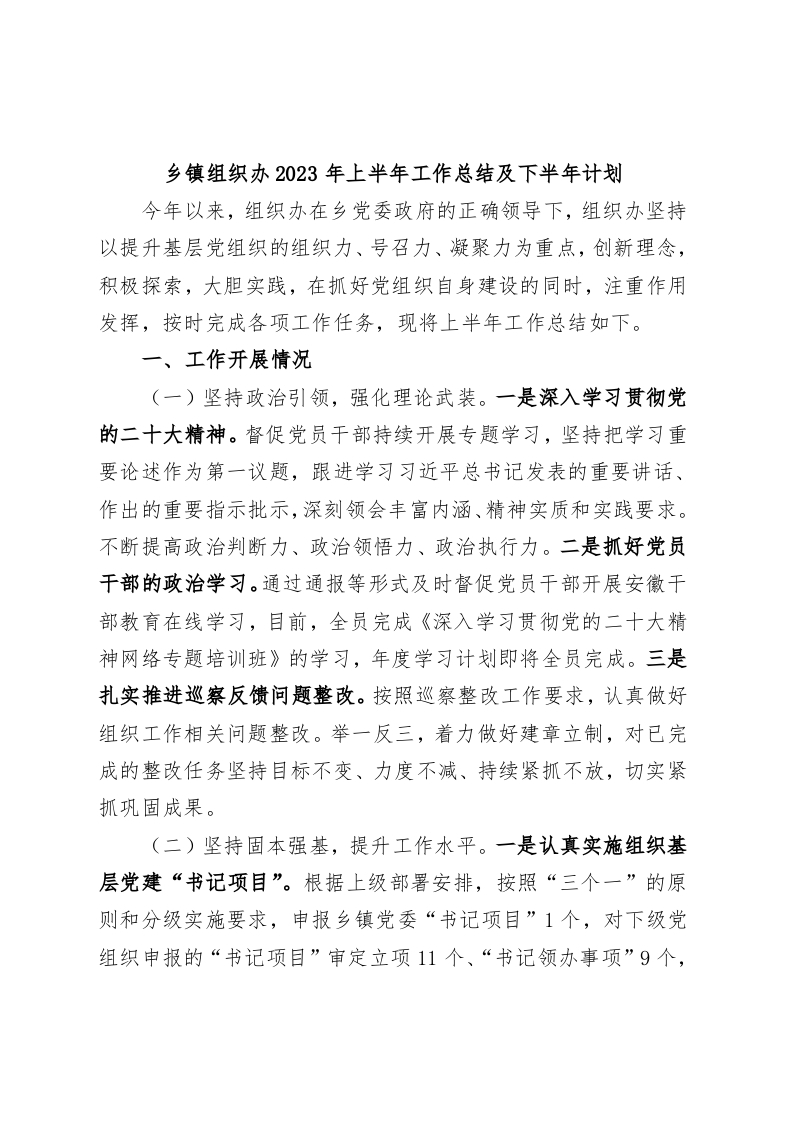 / 乡镇街道组织办2023年上半年工作总结及下半年计划
