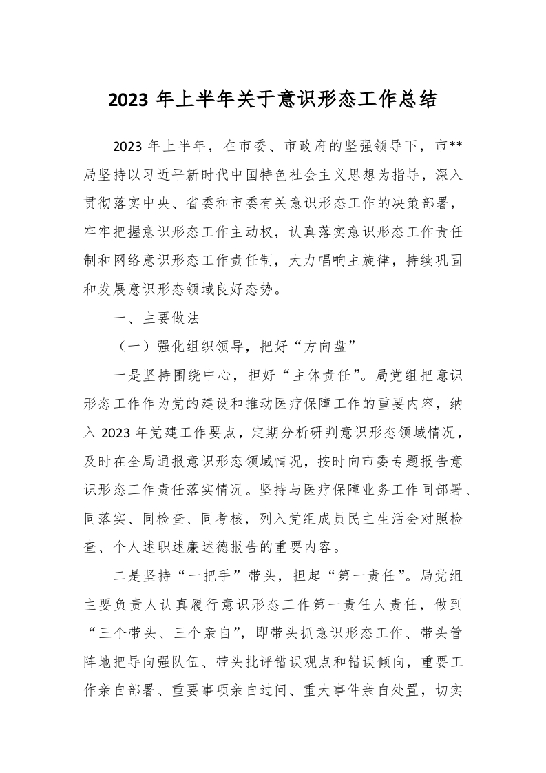 / 2023年上半年关于意识形态工作总结