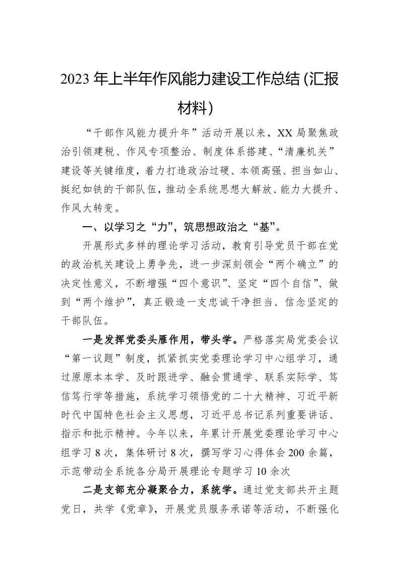 / 2023年上半年作风能力建设工作总结(汇报材料)