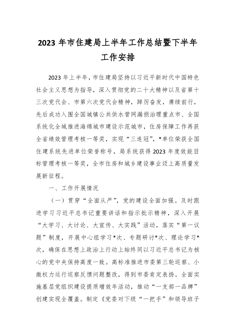 / 2023年市住建局上半年工作总结暨下半年工作安排