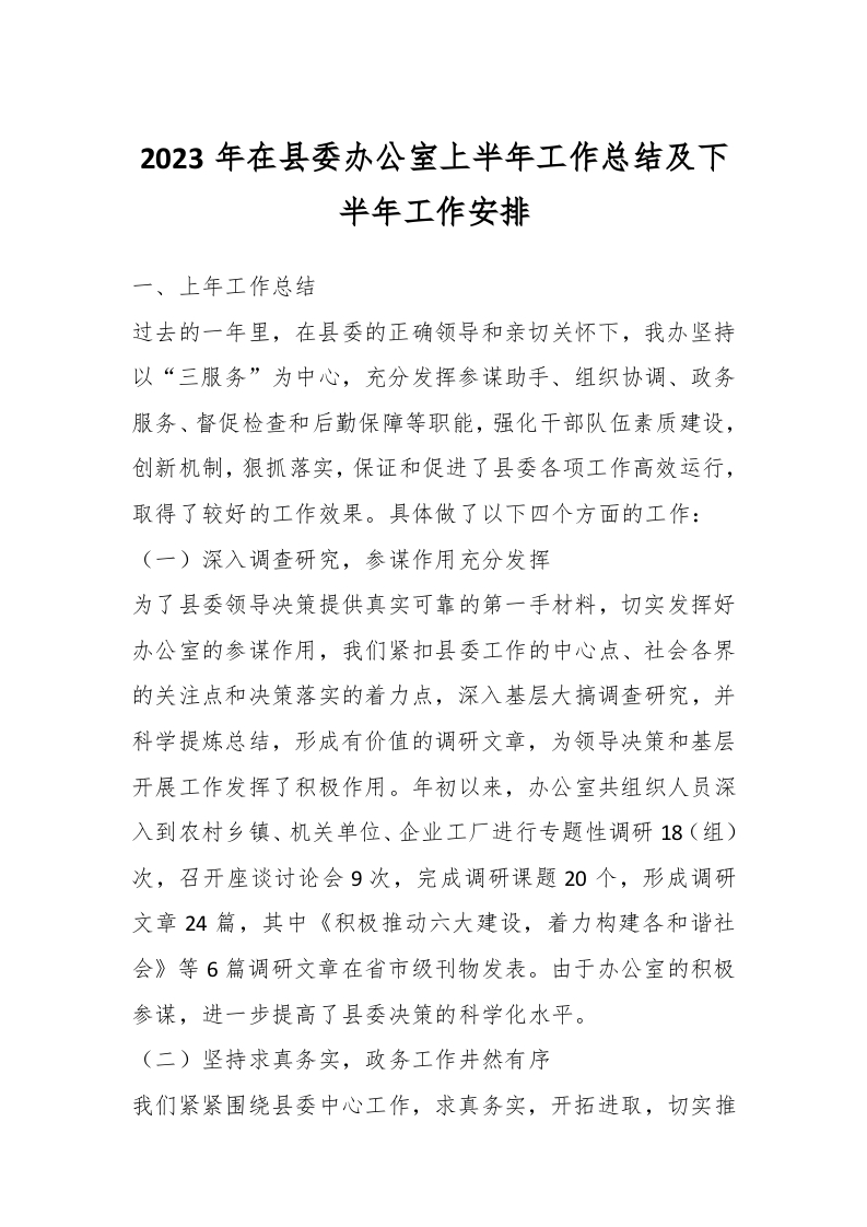 / 2023年在县委办公室上半年工作总结及下半年工作安排