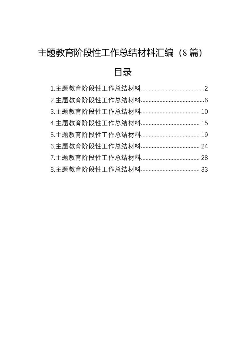 / 主题教育阶段性工作总结材料汇编(8篇)