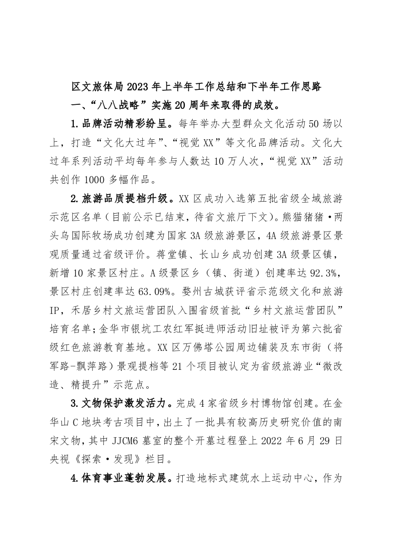 / 区文旅体局2023年上半年工作总结和下半年工作思路