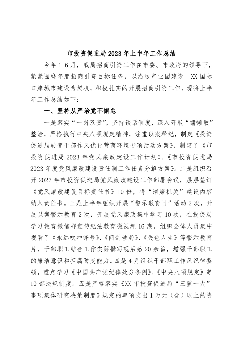 / 市投资促进局2023年上半年工作总结