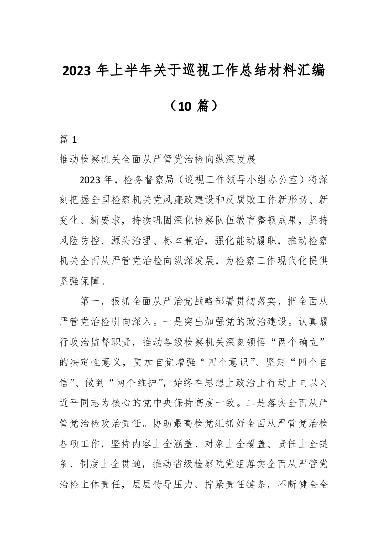 / (9篇)2023年上半年关于巡视工作总结材料汇编