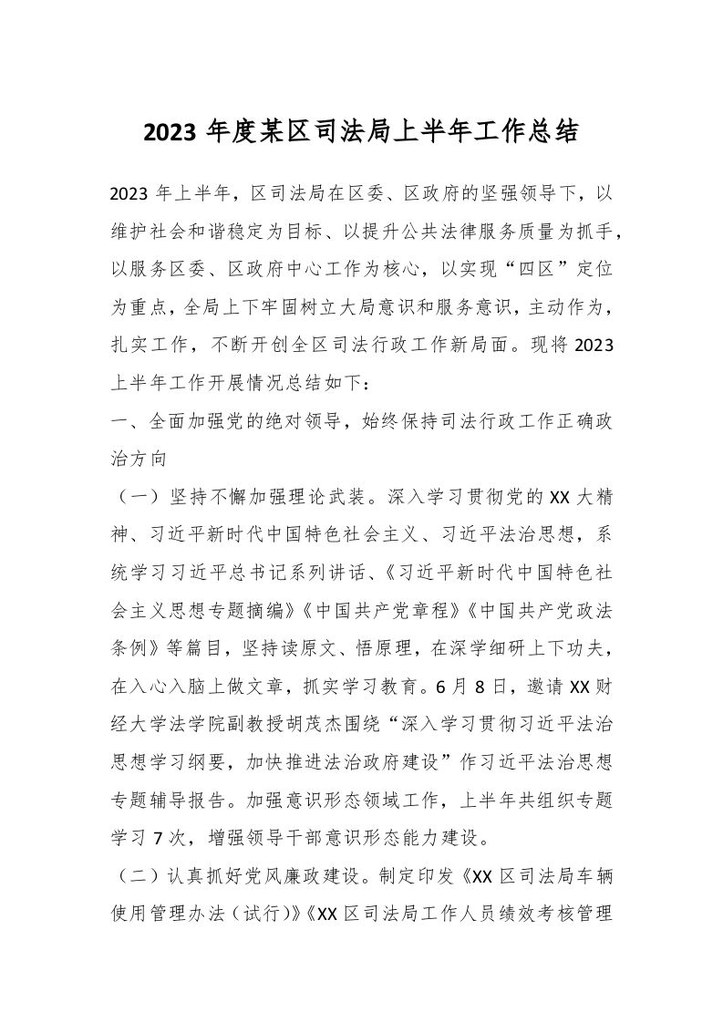 / 2023年度某区司法局上半年工作总结