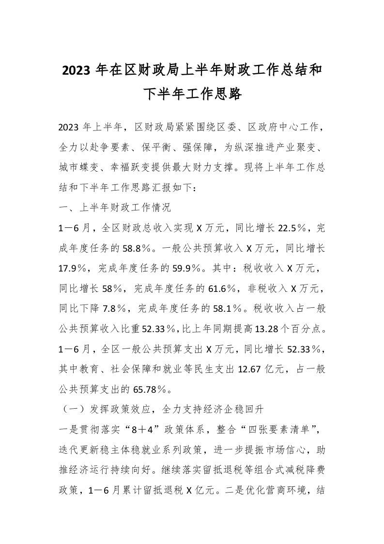 / 2023年在区财政局上半年财政工作总结和下半年工作思路