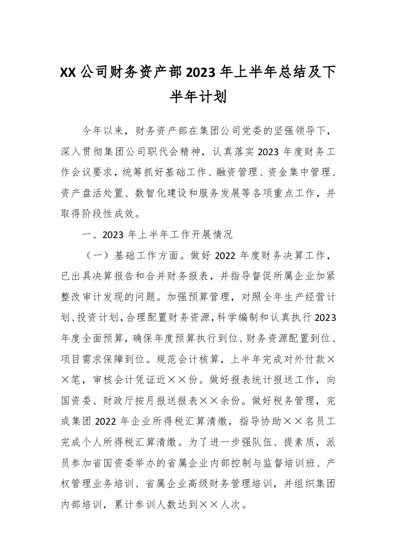 / XX公司财务资产部2023年上半年总结及下半年计划