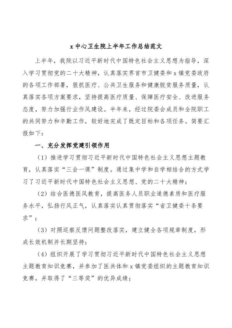 / 卫生院上半年工作总结汇报报告