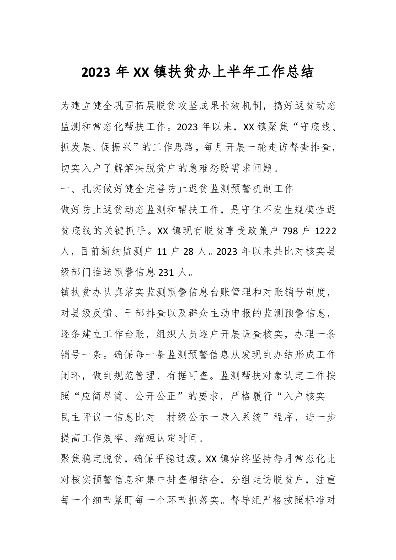 / 2023年XX镇扶贫办上半年工作总结