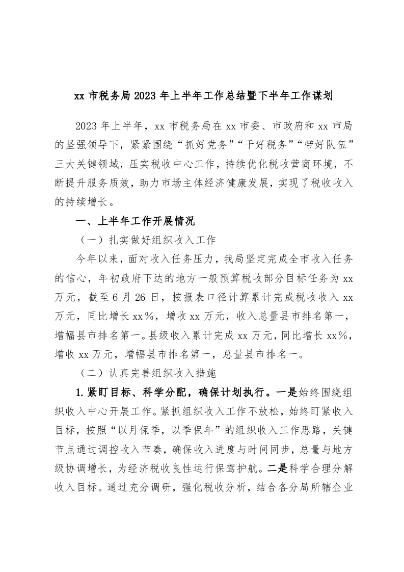 / xx市税务局2023年上半年工作总结暨下半年工作谋划