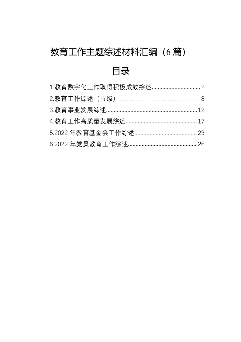 / 教育工作主题综述材料汇编(6篇)