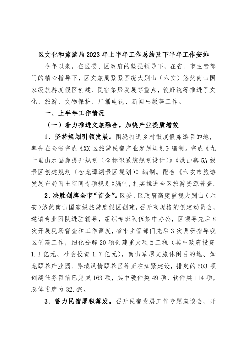 / 区文化和旅游局2023年上半年工作总结及下半年工作安排