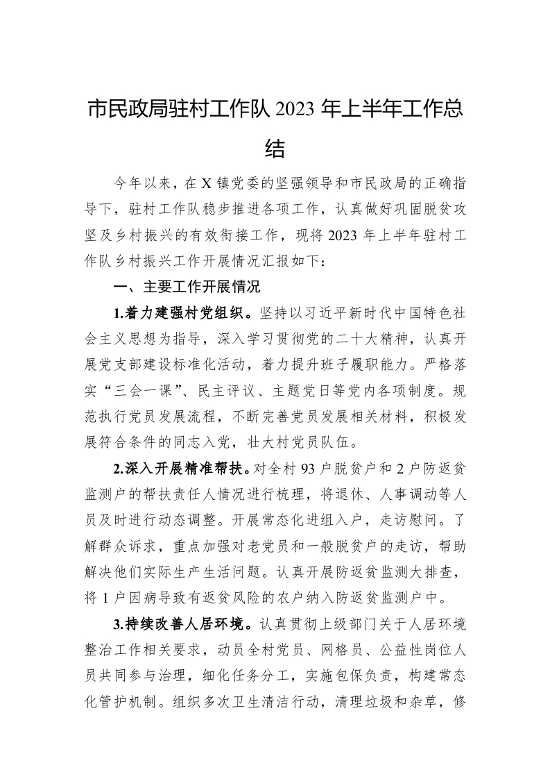 / 市民政局驻村工作队2023年上半年工作总结