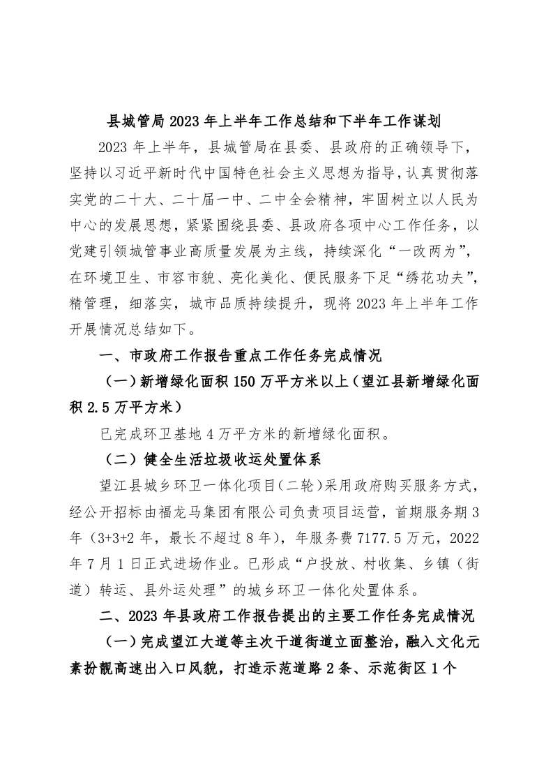 / 县城管局2023年上半年工作总结和下半年工作谋划