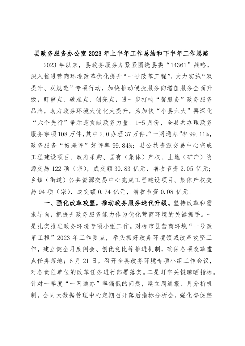 / 县政务服务办公室2023年上半年工作总结和下半年工作思路