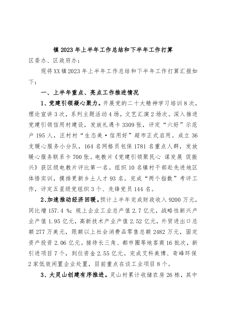 / 镇2023年上半年工作总结和下半年工作打算