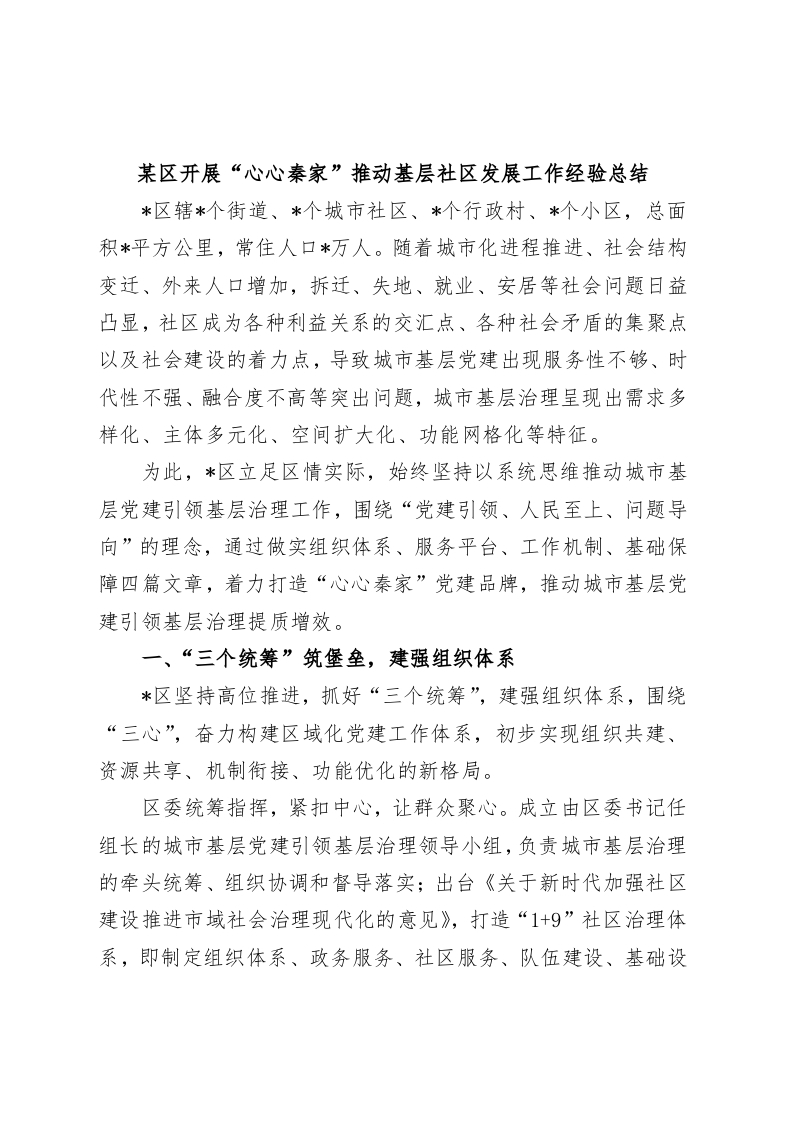 / 某区开展“心心秦家”推动基层社区发展工作经验总结