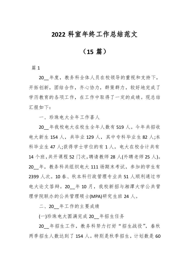 / (15篇)2022科室年终工作总结范文