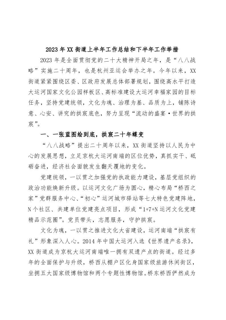 / 2023年XX街道上半年工作总结和下半年工作举措